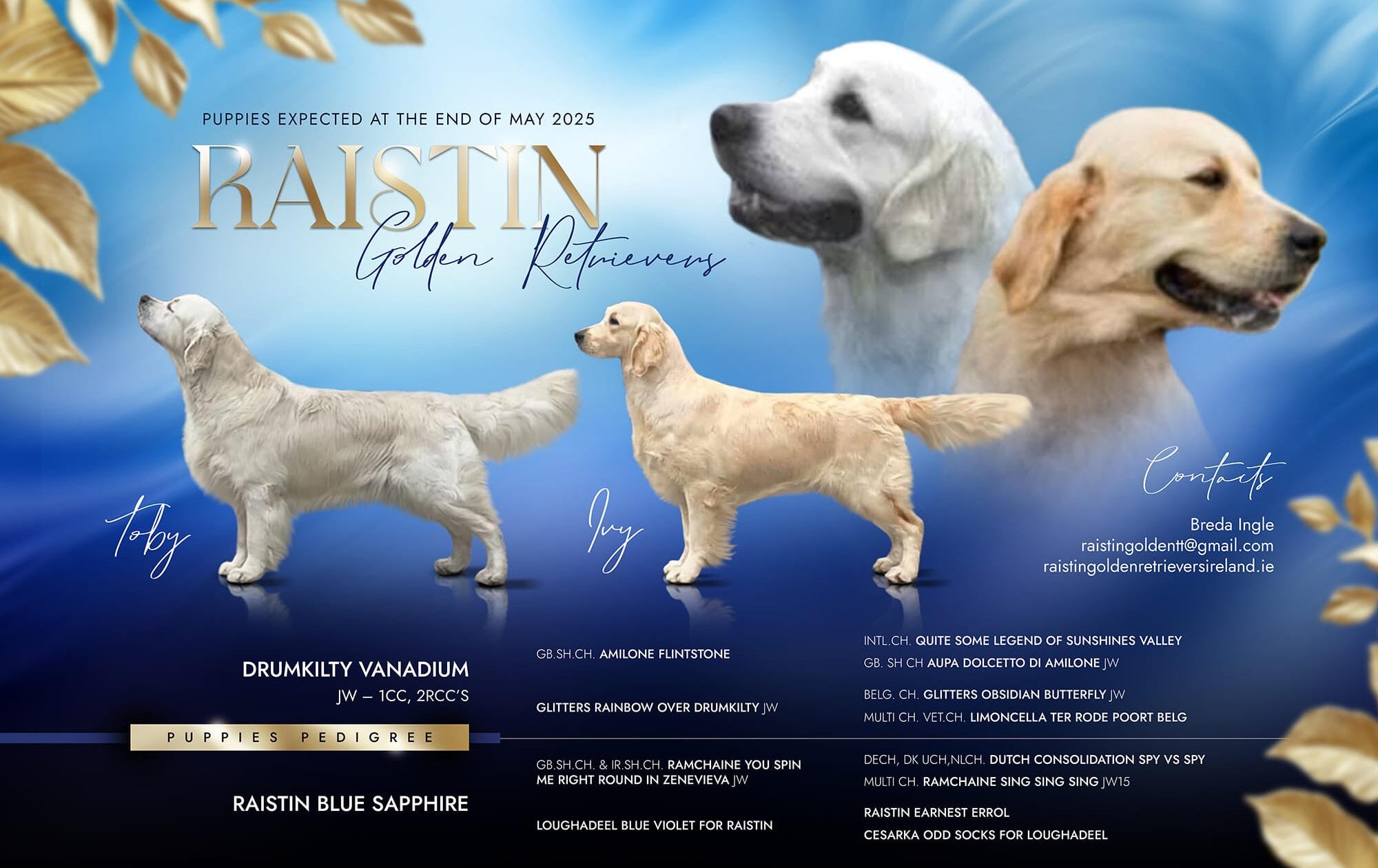 Breda Ingle’s Raistin Golden Retrievers — Raising Champion Golden Hearts for 25 YearsPhone Number - +(353) 86 400 4599Email Address - [email protected]